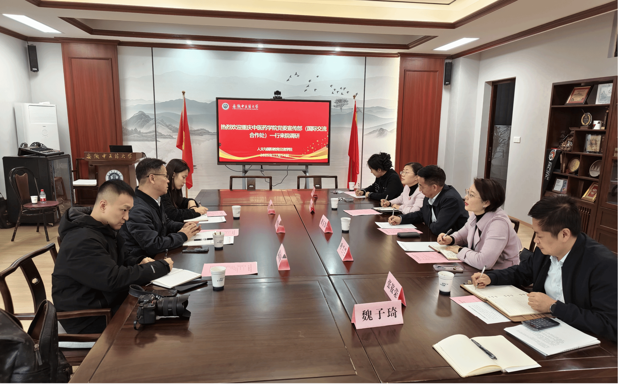 11月14日下午,重庆中医药学院党委宣传部(国际交流合作处)部长唐彤东一行3人来校,开展来华留学教育教学专项调研。校党委常委、宣传部部长董玉节出席座谈会。会上,董玉节对唐彤东一行的到来表示热烈欢迎,简要介...