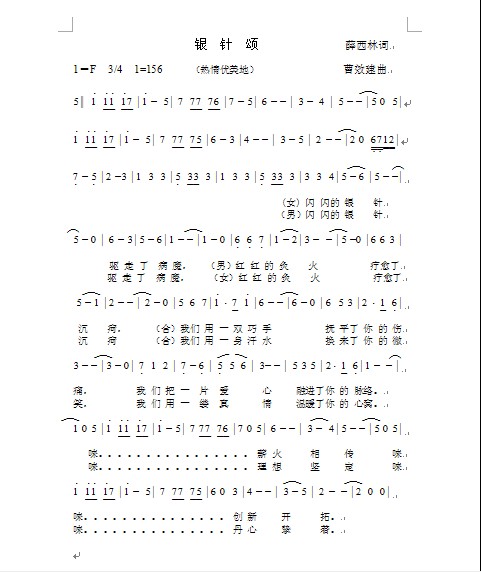 银针颂 安徽省针灸医院院歌 (薛西林词) (赞美地 自豪地) 一 &n...