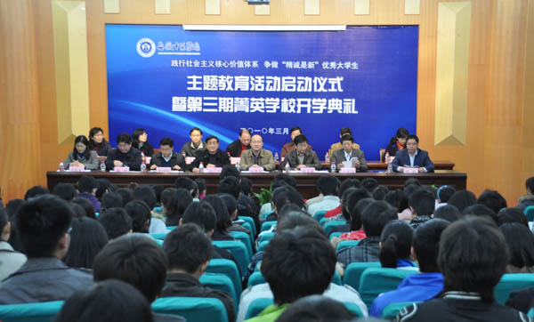3月25日下午,学校隆重举行“践行社会主义核心价值体系,争做‘精诚是新’优秀大学生”学生主题教育活动启动仪式暨第三期大学生菁英学校开学典礼。团省委副书记汪华东、学校部部长李国阳,校党委副书记雷广宁,党...