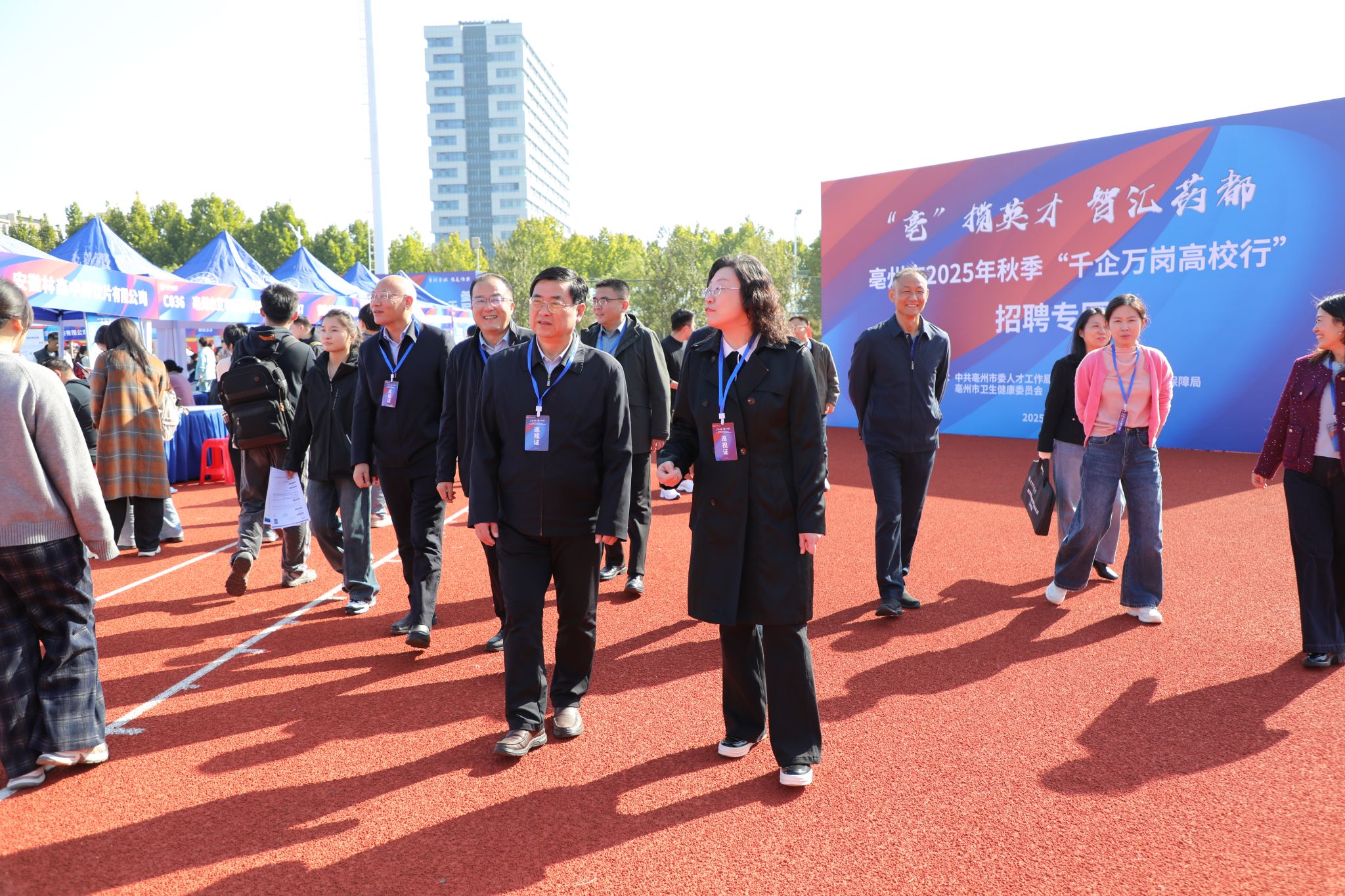 10月24日,由安徽省教育厅、安徽省人力资源和社会保障厅、安徽省卫生健康委员会及安徽省中医药管理局主办的——“人才兴皖 ‘就’在江淮”安徽省2026届高校毕业生省级系列就业招聘会之中医药类秋季招聘会在Beat365举办,校党委书记谢瑞瑾,党委副书记周新发,党委常委、纪委书记、监察专员詹灵杰,党委常委冯祥及省人社厅相关处室领导亲临现场指导工作,与用人单位和毕业生亲切交流。各学院党政领导班子及毕业班辅导员全程参与。