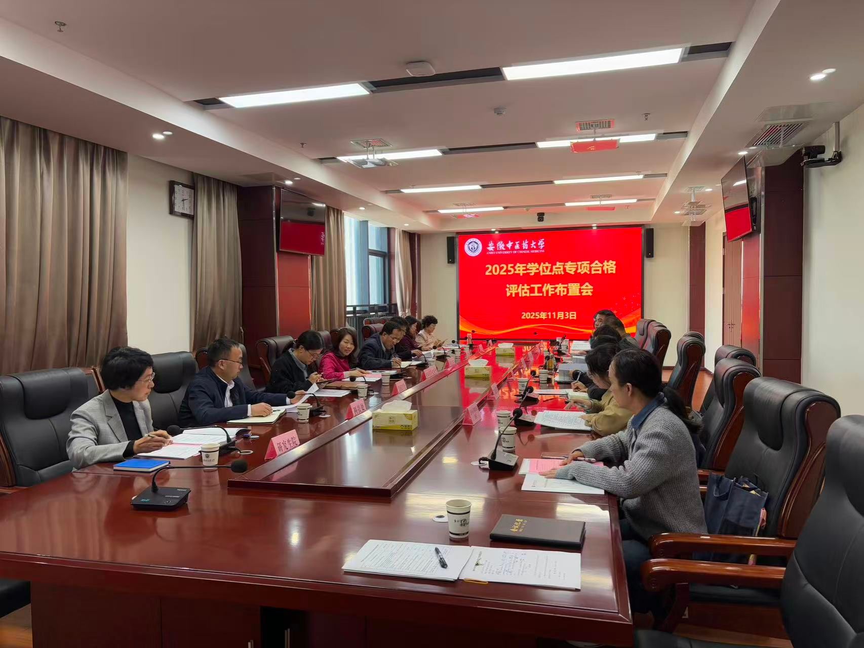 11月3日下午,学校召开2025年学位点专项合格评估工作布置会。校党委常委、副校长桂双英主持会议,研究生院、人事处、发展改革处(学科办)、学生处、科技处、财务处等职能部门主要负责人,马克思主义学院、第一临床医学院、第二临床医学院、神经病学研究所、上海中医药大学附属曙光医院安徽医院等单位负责人,以及本次参评学位点秘书参加会议。