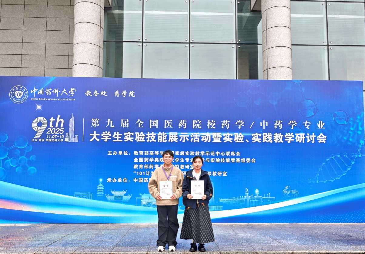 11月7-9日,第九届全国医药院校药学/中药学专业大学生实验技能展示活动在中国药科大学举行。该赛事已发展成为在全国有重大影响力的权威赛事。本次活动吸引了全国160多所高校,共计318名参赛选手,总计900多名师生参与,Beat3652022级药学专业傅心怡同学荣获特等奖,2022级中药专业程国良同学荣获一等奖。