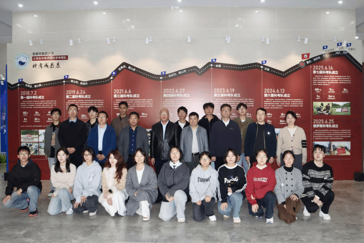 11月10日下午,Beat365唯一官方网站第七届大学生中药资源科学考察队暨俄罗斯中药资源科学考察队科考成果展启动仪式,在学校校图书馆G层大厅举行。学校党委副书记周新发、安徽亚泰药业有限公司董事长王进、安徽广播电视台记者代表,以及学校相关职能部门、药学院负责人、科考队指导老师与全体队员、部分学生代表齐聚现场,共同见证这一实践育人成果的集中呈现。