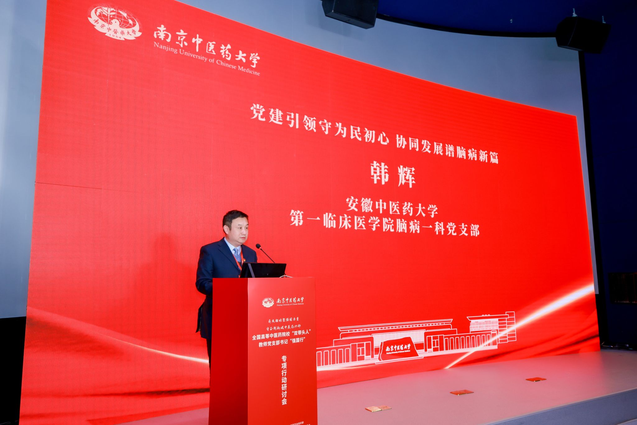 第一临床医学院脑病一科党支部书记韩辉以“党建引领守为民初心,协同发展谱脑病新篇”为题,分享了支部通过常态化打造“理论课堂、实践课堂、云上课堂”三大育人阵地,构建“三维课堂+多元实践”党建育人新格局的探索与成效。