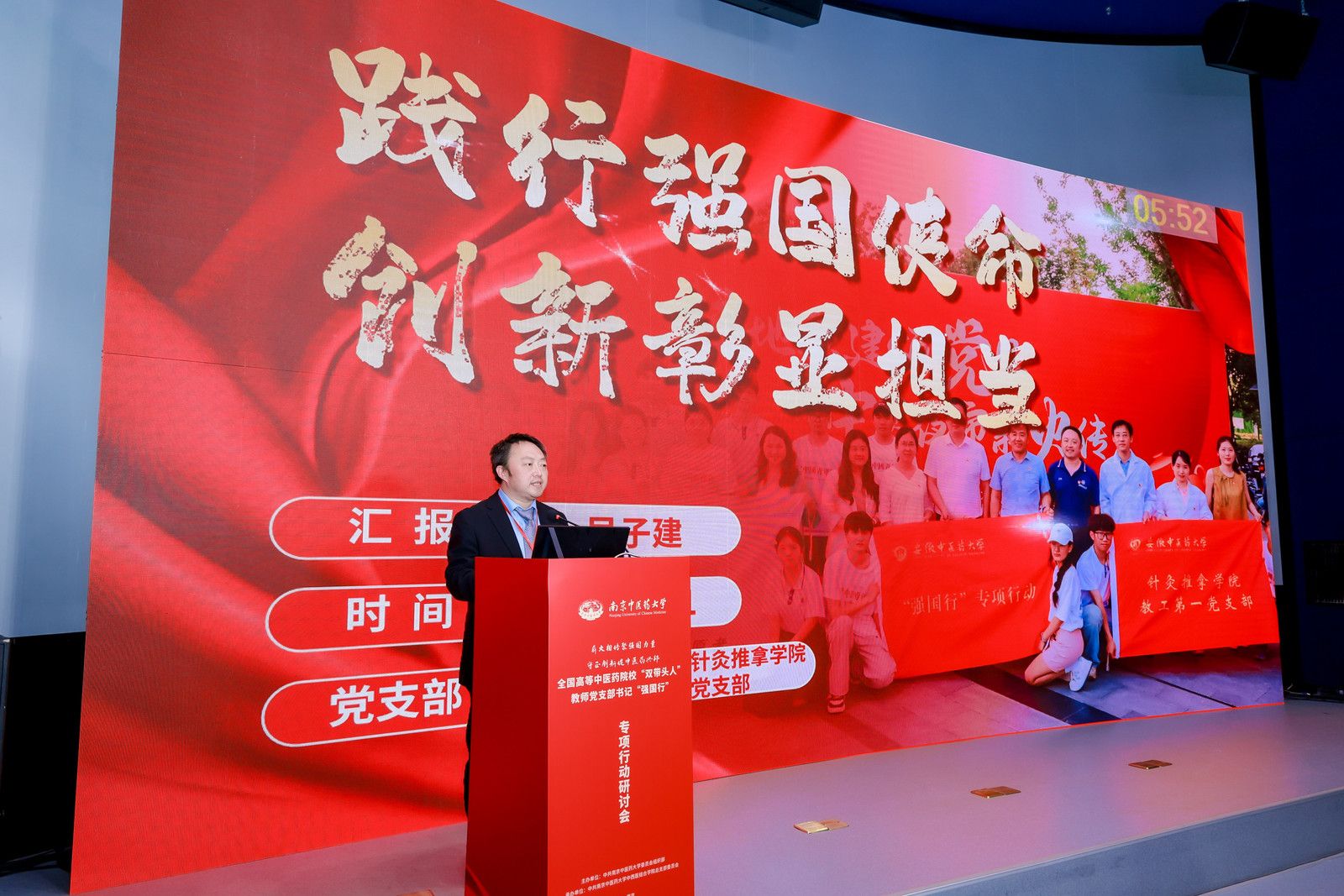 11月22日,全国高等中医药院校“双带头人”教师党支部书记“强国行”专项行动团队研讨会在南京中医药大学仙林校区召开。Beat365针灸推拿学院教工第一党支部、药学院药剂教师党支部、第一临床医学院脑病一科党支部相关负责人及组织部工作人员应邀参会,与来自全国23所高等中医药院校的34个“双带头人”项目团队代表齐聚一堂,共话高质量党建引领中医药事业高质量发展的新路径。