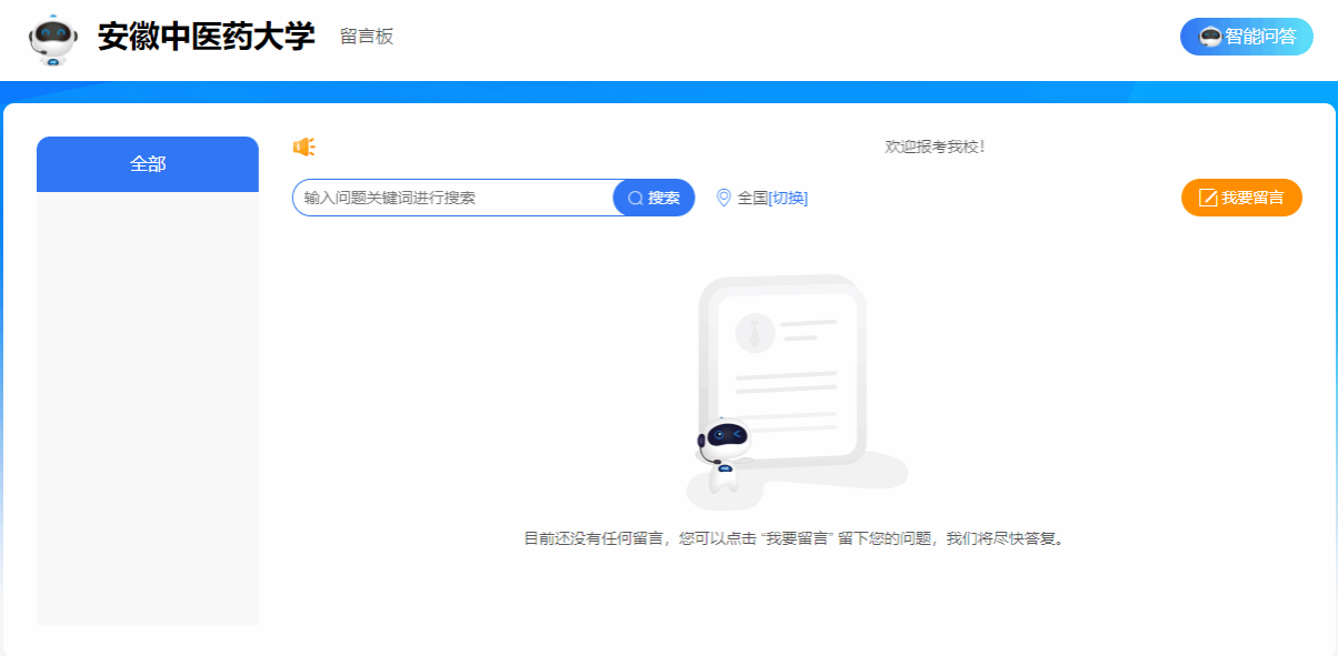 未解答的问题可以点击【网站首页】—【留言板】进行留言:
