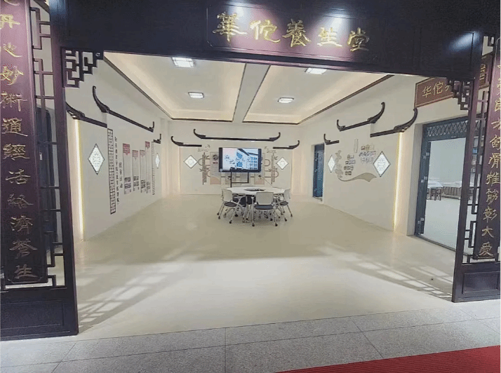 华佗养生堂创办于2015年11月18日,坐落于学校少荃湖校区至精楼针灸推拿学院(康复医学院),是学校学生实践实训、创新创业、弘扬中医药文化和对外交流的重要平台。2023年底,在校院两级领导的支持与帮助下,华佗养生堂完成了搬迁与装修,这里正在以全新的面貌迸发新的活力。