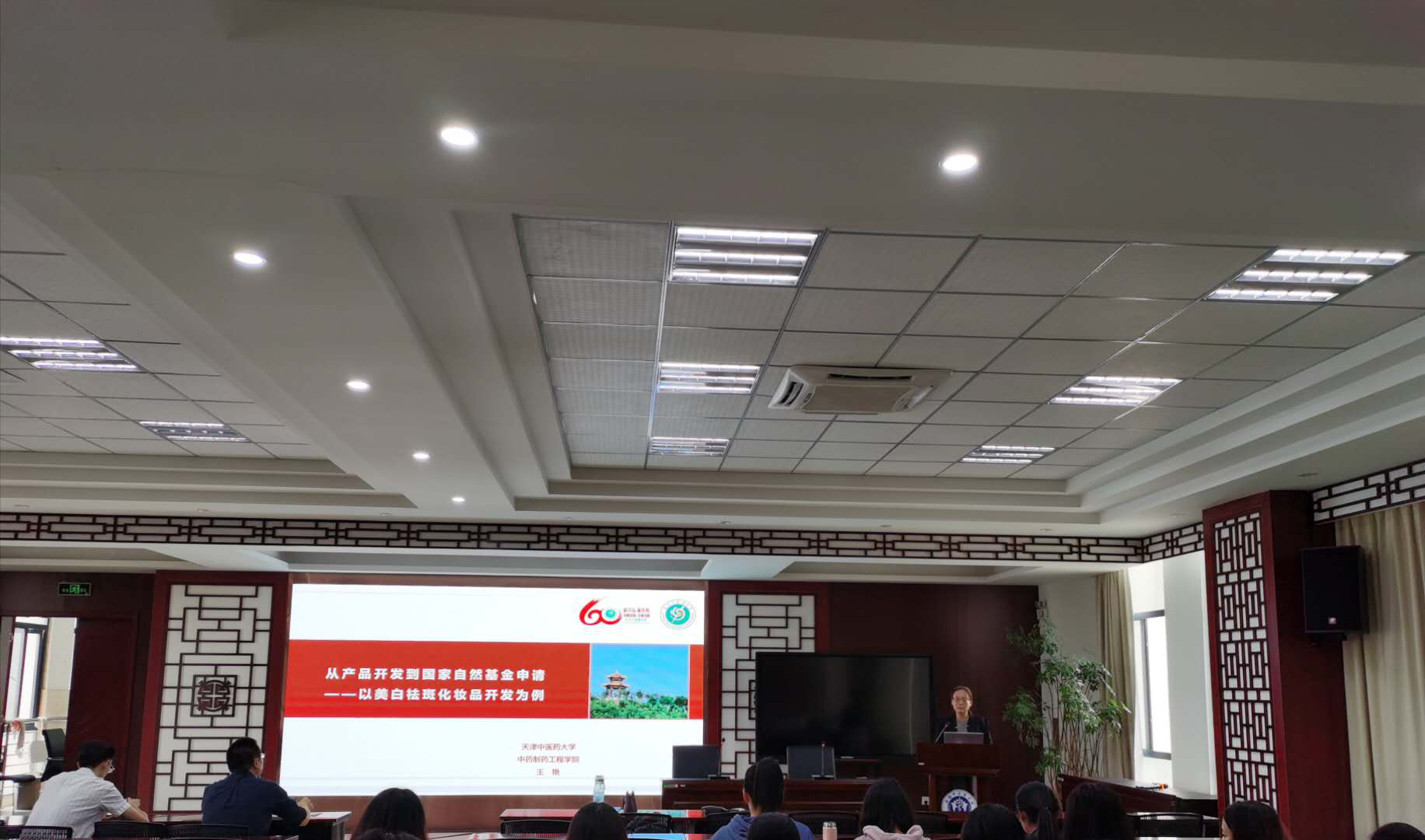 9月25日上午,天津中医药大学王艳副教授应邀来Beat365作“从产品开发到国家自然基金申请-以美白祛斑化妆品开发为例”学术讲座。会议由药学院副院长尹登科主持,药学院部分教师及博士、硕士研究生参加了此次报告会。