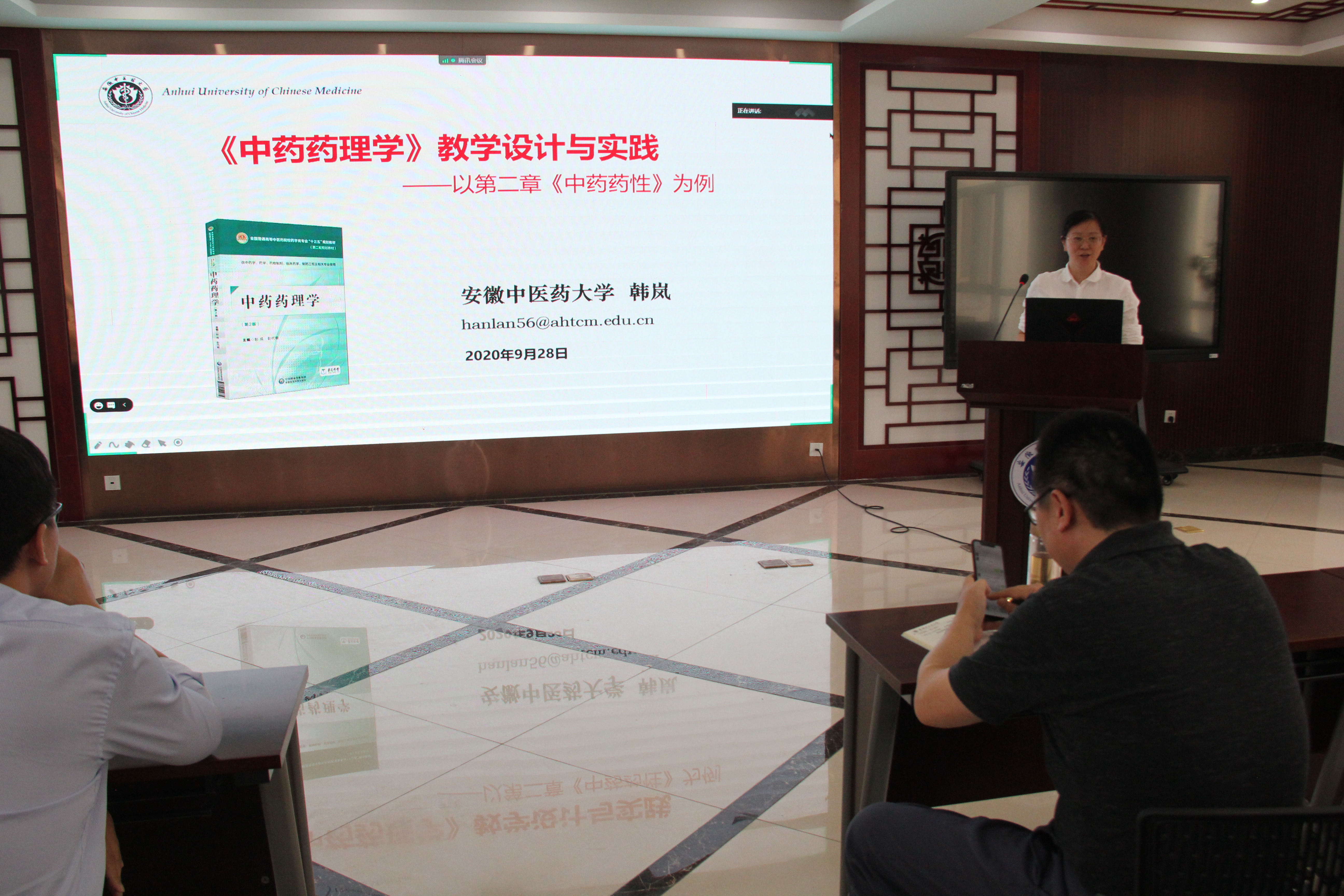 韩岚副教授报告题目为:“《中药药理学》课程药性研究的教学设计与实践”,她以《中药药理学》第二章《中药药性》为例,以教学五自问为导向,介绍了教学设计的含义、要素和意义。详细阐述了专业培养目标、课程培养目标之间的区别与联系,从点、线、面的角度结合课程内容的实例介绍如何开展重难点、疑点的设计与教学,为青年教师的教学方法开辟了道路,指明了方向。