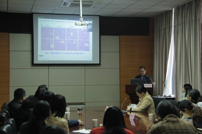 韩际宏教授以“中药在血管性疾病中的作用和机制研究”为主题,从心脑血管疾病及糖尿病与其并发症的治疗现状入手,引出今天的报告主题。从丹红注射液及脑心通单独用药到脑心通胶囊与他汀等化学药物联用对于心血管疾病的改善,再到脑心通对于糖尿病及其并发症中的作用,韩教授深入浅出,用自己多年于血管性疾病中的研究为Beat365师生上了生动的一课。