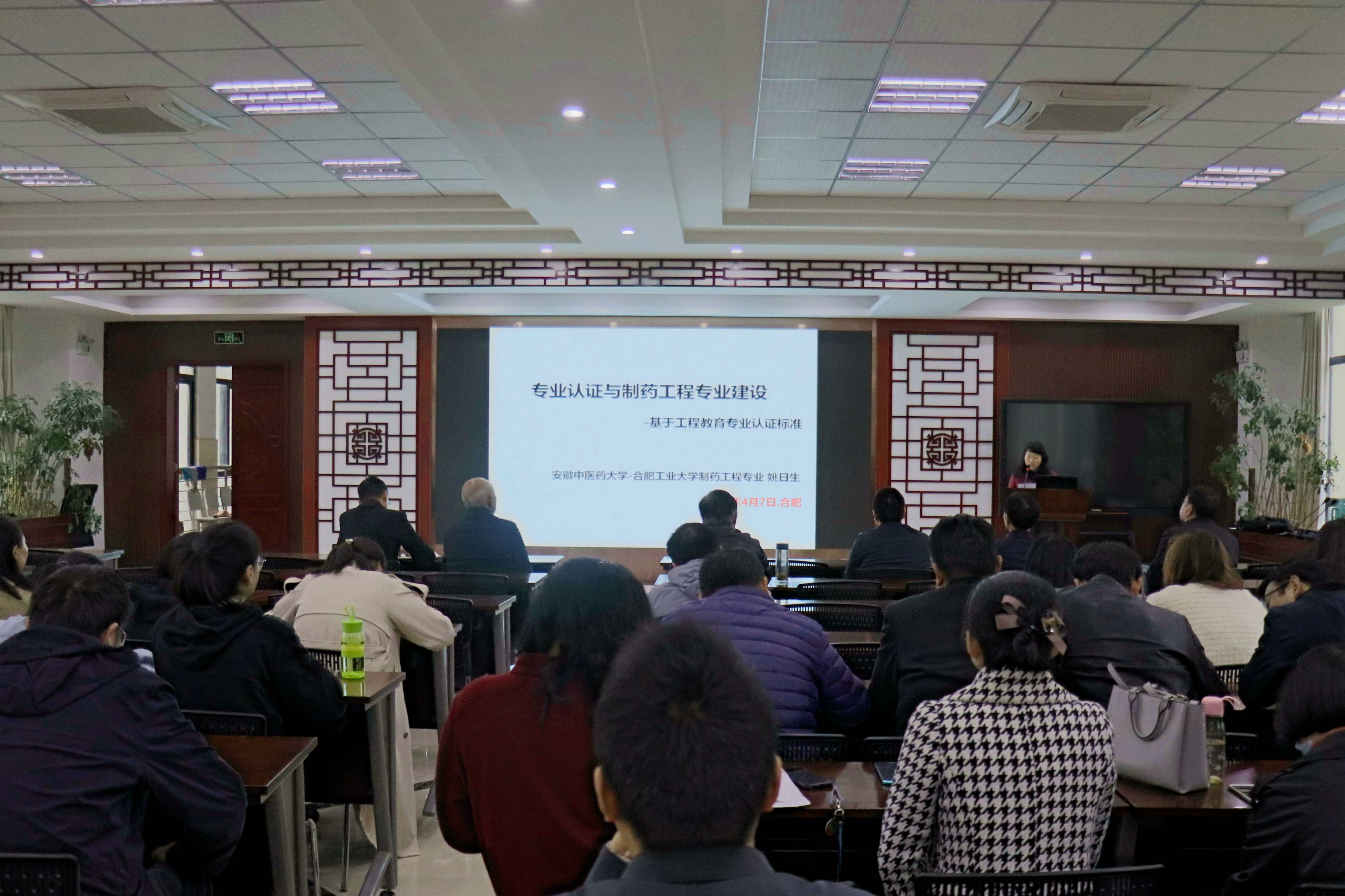 4月9日下午,合肥工业大学姚日生教授应邀来Beat365作“专业认证与制药工程专业建设”专题辅导报告。报告会在药学院沁馨堂召开,药学院院长桂双英教授主持,副校长许钒、教务处相关领导和药学院全体教师参加。