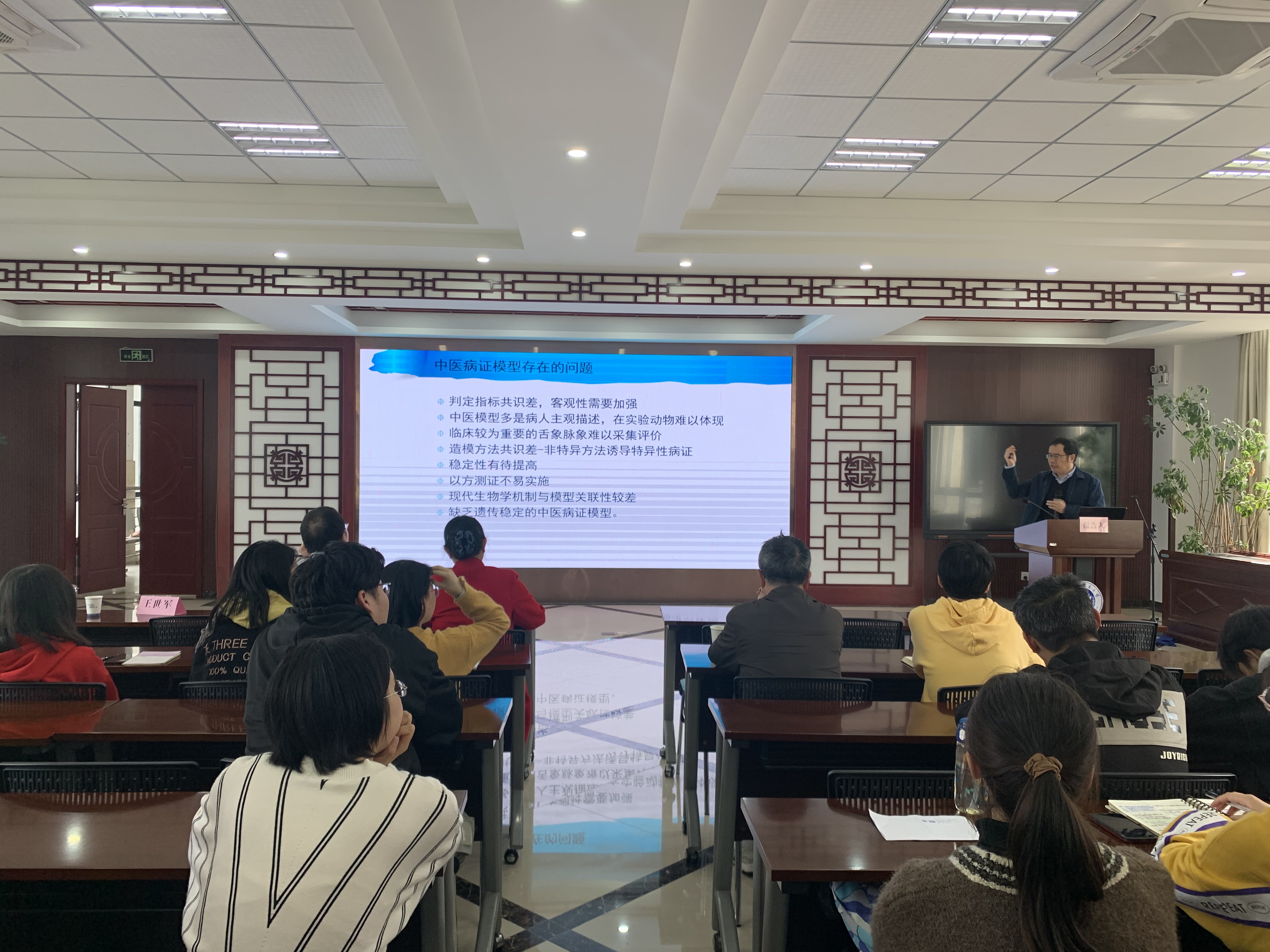 王世军教授以《中医病证模型的研究与思考》为题,介绍了中医病证模型的特点和常见的病症模型以及存在的问题,以“脾虚水湿不化”、“上焦水饮内停”等中医病症为例,围绕模型的建立、评价及展开的研究进行探讨。王世军教授指出,构建符合中医辨证特点的新型动物模型,对于中药新药创制和疗效判定以及中医证型的本质阐释,具有十分重要的意义。