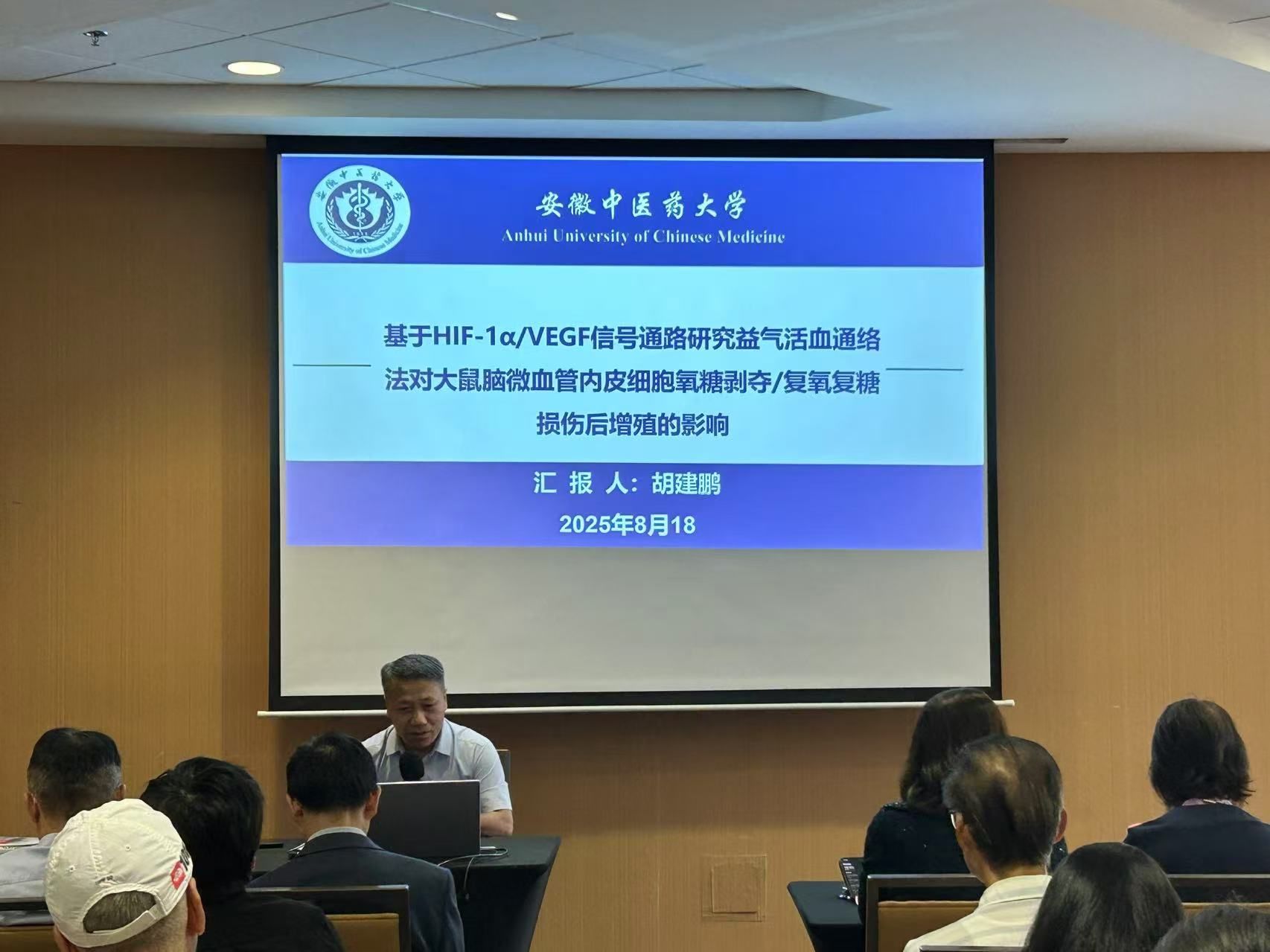储全根在会上作 “新安医学的成就与贡献”的主题报告,胡建鹏作“基于HIF-1α/VEGF信号通路研究益气活血通络法对大鼠脑微血管内皮细胞氧糖剥夺/复氧复糖损伤后增殖的影响”的报告,童佳兵作“国医大师韩明向教授治疗慢阻肺临床用药研究”的报告,王坤和董妍妍分别作 “基于抑制Notch1/Jagged1信号通路增强BMSCs归巢能力研究Th1/Th2漂移在哮喘免疫炎症中的作用”“民国新安医学文献及代表医家学术经验研究”的报告。报告收获了全体与会代表的高度认可,同时引发了大家围绕核心议题展开更深入的互动交流。