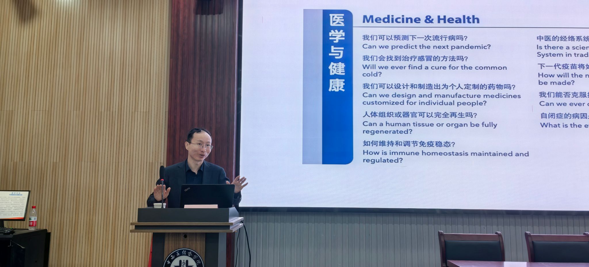 在互动环节,项耀祖与在场师生就中医证候的动态演变、中药复方与现代免疫细胞命运的关联、中西医理论在心脏病治疗中的协同路径以及国自然申报常见问题等内容展开了热烈讨论。他鼓励科研人员既要尊重中医传统理论,又要善用现代科技手段进行验证与创新,推动中医药研究的国际化与科学化表达。与会师生表示,本次讲座内容系统详实、案例生动,既有理论高度又具实操指导性,对提升科研选题能力具有重要启发。