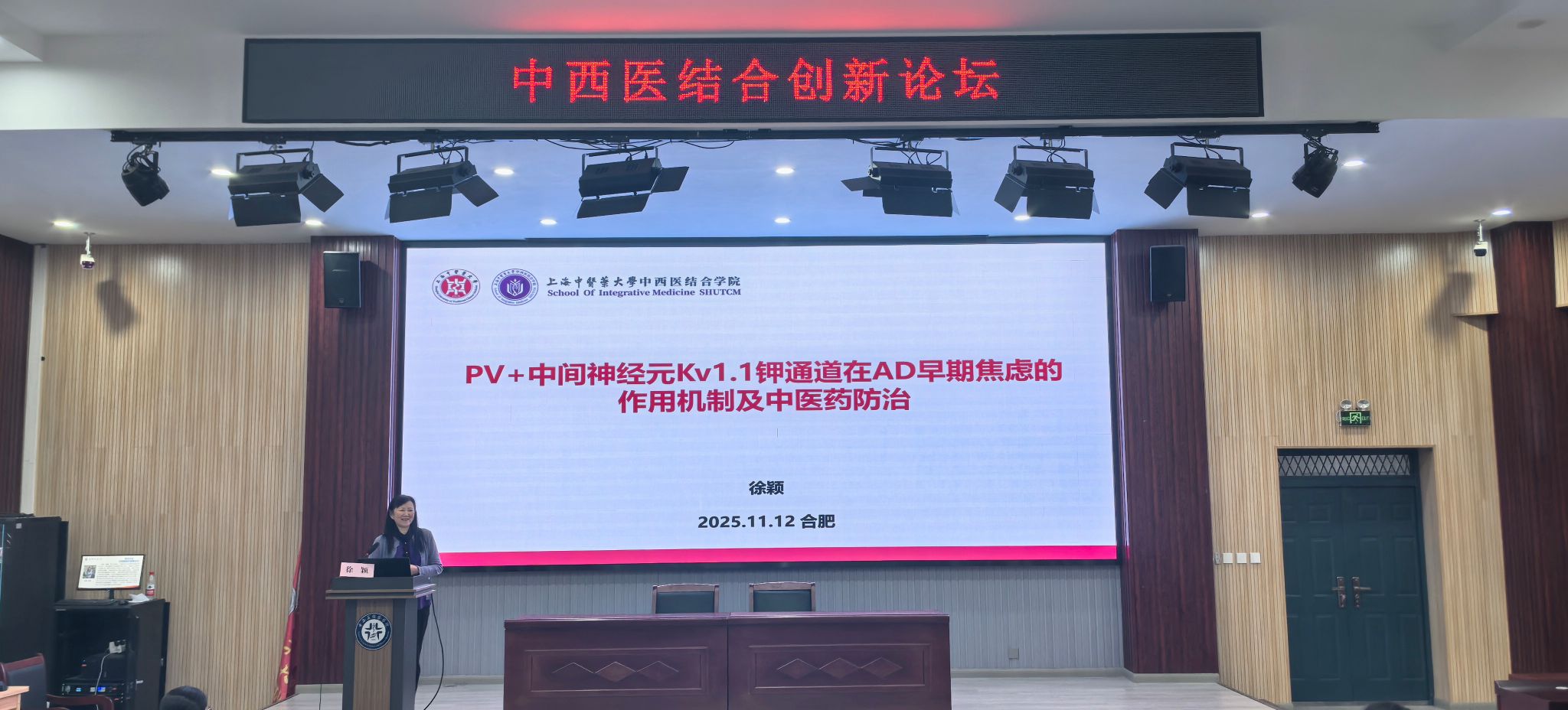徐颖围绕“PV+中间神经元Kv1.1钾通道在AD早期焦虑的作用机制及中医药防治”开展专题讲座,重点介绍了PV+中间神经元中Kv1.1钾通道在AD发病早期的关键作用。她结合其团队在电生理与行为学方面的研究成果,深入阐释了Kv1.1钾通道异常导致神经元兴奋/抑制失衡的机制,并进一步探讨了甘草素等中药成分在调节神经元兴奋/抑制平衡从而防治AD的潜在价值。