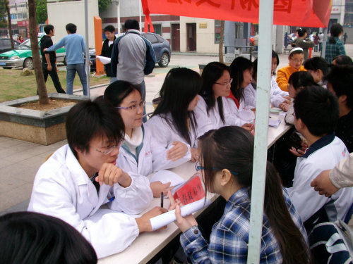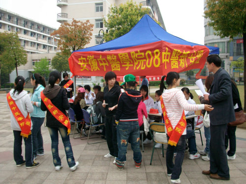 4月17日,中医临床学院2008级新安教改试验班的同学在大学生公寓举办了一场“中医在身边”主题宣传活动。