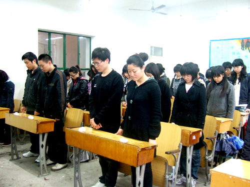 医药经济管理学院14个在校班级纷纷在4月21日自发举办各类捐款、哀悼活动。