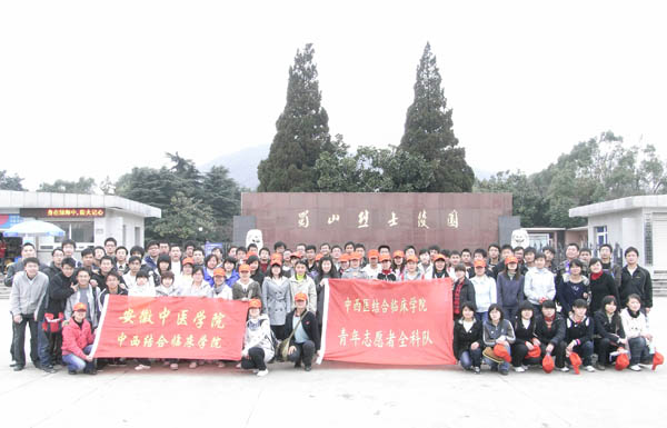 为缅怀革命英烈,继承发扬老一辈革命家的优良传统,深化“感恩”教育和革命传统教育,激发同学们的爱国主义情感,努力学习和践行两会精神,中西医结合临床学院团总支积极响应校党委号召,引导大家树立正确的世界观、人生观和价值观,提高我院广大学生党员的主人翁意识,更好地发挥共产党员的模范带头作用,3月27日下午,中西医结合临床学院青年志愿者全科队联合2009级中西医临床医学全科班及专升本班同学积极组织了一次“缅怀先烈,崇尚和谐”之蜀山行活动。