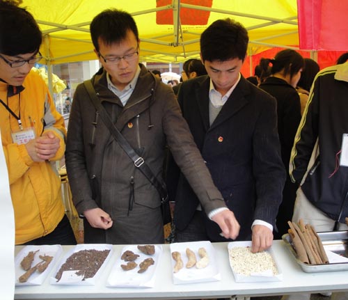 活动中,天空中还飘着毛毛细雨,气温骤降,志愿者们克服困难、热情不减。专家和医师们现场为一些中老年患者检查身体并提出一些合理化的治疗方案;向路人讲解西红花、灵芝、天麻、当归等中药的药用价值以及食用方法,还带去了何首乌、冬虫夏草、肉桂等中药材的真伪品,讲解了辨别真伪的一些简单实用的方法。学生志愿者们手持宣传画册向路人介绍家庭养生保健常识。