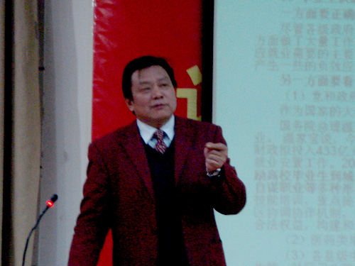 讲座中,孟庆全从就业情况、职业生涯规划以及比赛中可能出现的问题三个方面入手,详细地向在场同学阐明了当今大学生所面临的机遇和挑战。他首先引用多个实例,结合社会现状、家长期望以及学生的自身情况分析了 2010年严峻的就业形势和就业压力,分析了当前大学毕业生就业中存在的主要矛盾与困难。随后,他详细介绍了职业生涯规划设计的意义及步骤,指出职业规划总体步骤的重要性。他希望毕业生能够认清就业形势,对未来准确定位。孟庆全还就职业生涯规划设计大赛中可能出现的问题,从作品格式、评分标准、作品设计要求个人定位及选题等方面进行论述和指导。