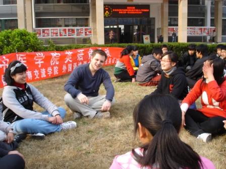 3月17日下午,春日融融,校国际教育交流学院在校东区华佗像前,主办了新学期第一次英语角活动,一群群同学围坐在一起,与来自英国的外教Ben积极交流,现场气氛热烈而有序。