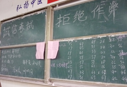 护理学院将12月作为诚信考试主题宣传月,各班级分别召开了诚信考试主题班会,对学生考试违纪现象进行剖析,通过引导讨论达成共识,让学生从头脑中牢固树立起“诚实守信为荣,考试作弊为耻”的观念。同时组织学生签署“诚信考试承诺书”承诺书,并在考试时将学生签名的承诺书张贴在考试的教室,随时警示。
