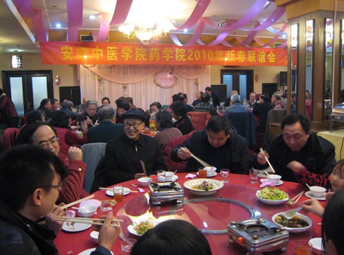 在喜庆欢快的气氛中,该院副院长戴敏(主持工作)致新春贺词。她指出,在辞旧迎新的时刻,曾经或正在药学院工作的教师们相聚在药学院温馨的大家庭里,相互传递着关爱之情、祝福之音,她向全体教职工表达祝福。同时向所有为药学院各项事业的发展做出过贡献的领导、老师们表示感谢。并回顾了该院2009年在教学工作、科学研究、人才培养、学生工作等方面取得的进展,展望了2010年该院将依靠全体教师们共同努力,实现各项工作的新进步,推动学院更好更快蓬勃发展。