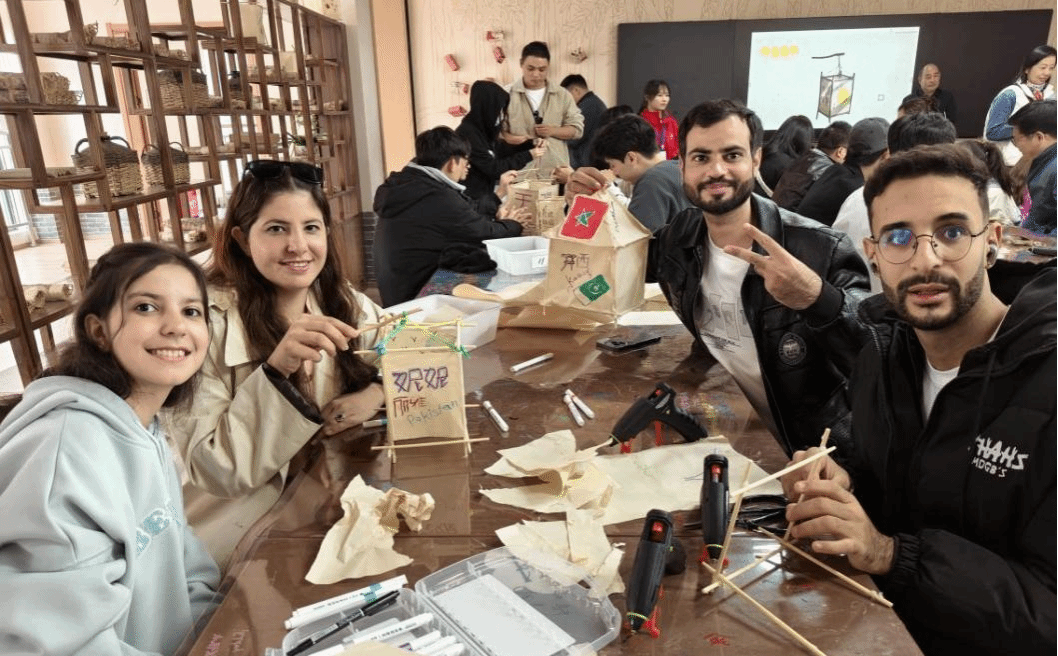 作为古皖文化荟萃地,天柱山亦是黄梅戏的故乡,是京剧的发源地,国际学生们集体观赏了黄梅戏表演,并学唱了黄梅戏《天仙配》中的经典唱段“树上鸟儿成双成对”。此外,大家也亲手体验了桑皮纸灯的制作,在互动交流中丰富拓展视野,也对当地的非遗技艺有了更直观和深刻的了解。他们也积极发布研学日记,用个性化的视角,让天柱山的自然之美与文化之韵传递到世界舞台。(魏子琦/文图 叶兰兰/审核)