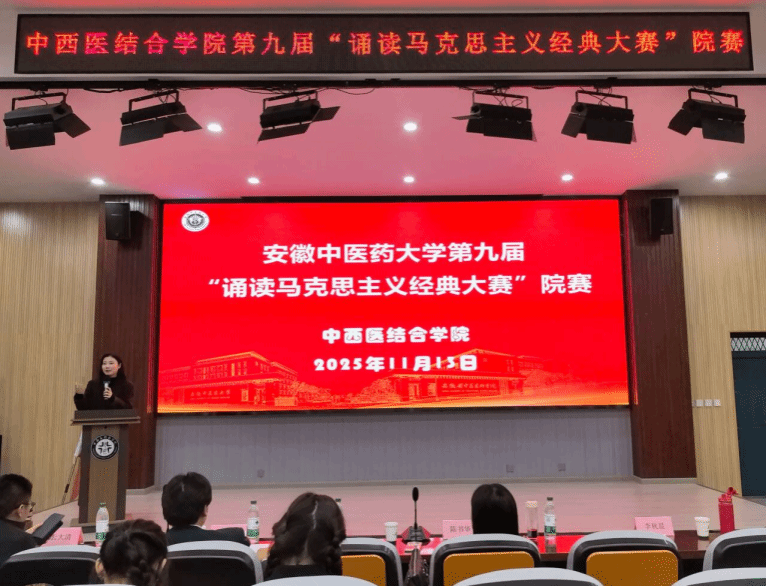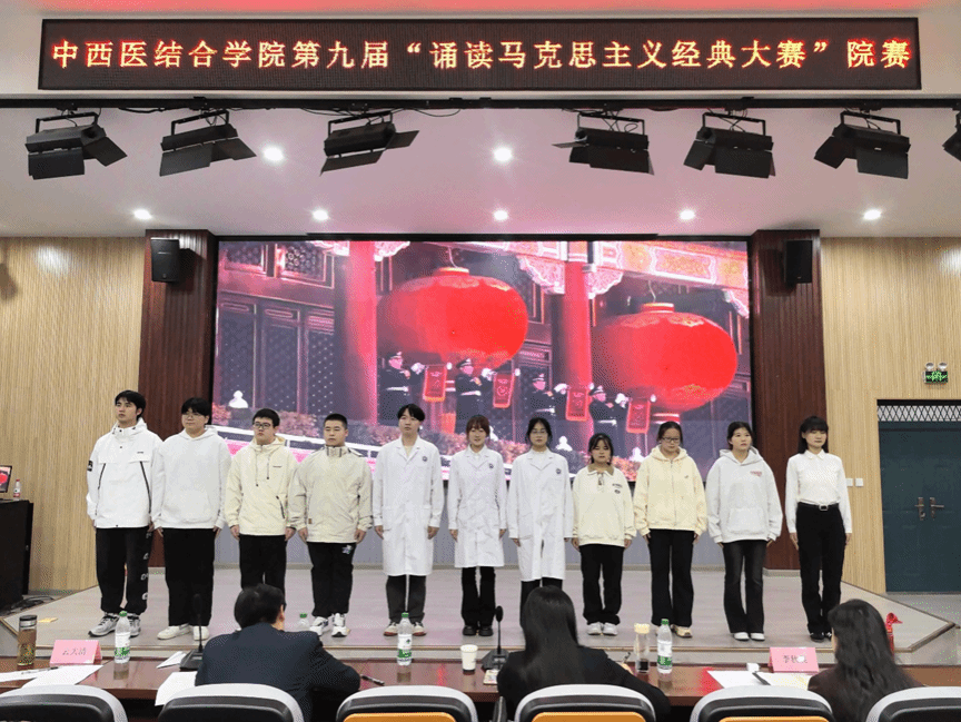 诵读马列经典,洞见真理之光。11月13日,中西医结合学院第九届“诵读马克思主义经典大赛”院赛在至精楼B254报告厅举行。本次大赛特邀马克思主义学院“马克思主义中国化”教研室陈书华老师、“中国近现代史纲要”教研室李秋晨老师,学院党委副书记彭青和、行政办主任云大清老师担任评委,学院2024级8个班级参加比赛。
