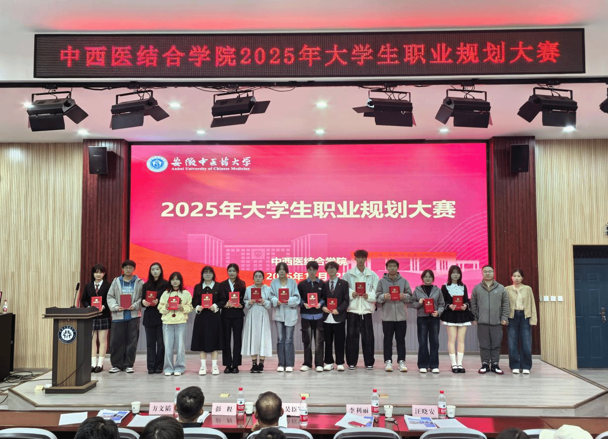 为全力提升学生职业生涯规划意识与求职能力,11月12日晚,中西医结合学院举办2025年大学生职业规划大赛,校团委书记彭程,体育健康学院直属党支部书记、院长吴臣军,学生处就业市场科科长李利丽,药学院学工办主任方文韬和中西医结合学院辅导员汪晓安担任评委。学院各年级200余名学生现场观赛。