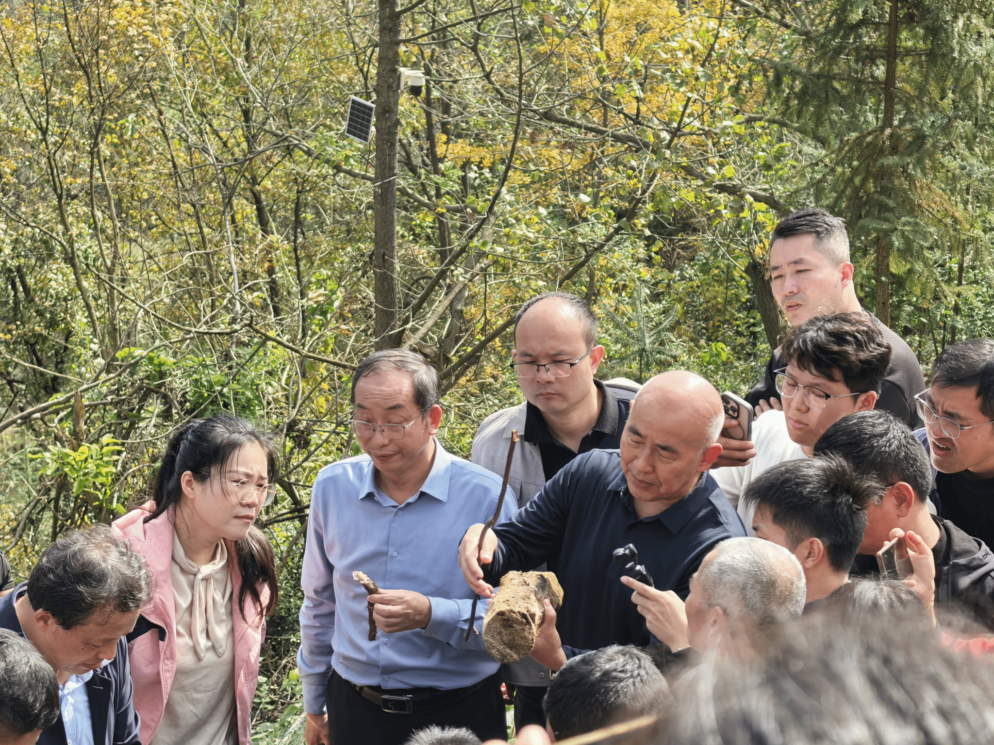 11月15日上午,学员们走进位于桃岭乡大湾村的国家稀缺药用菌种基地——“金山寨菌种厂”,实地观摩天麻、茯神等药用菌种的接种流程,并在田间亲手采挖茯神,深入了解菌类药材的繁育与栽培技术。