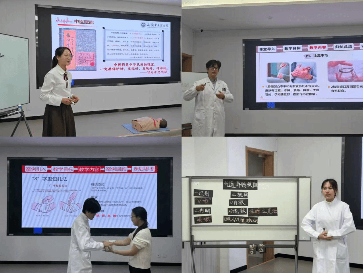 本届比赛吸引了来自学院2023级与2024级本科生的广泛参与,共有59组、177名学子同场竞技。经过初赛的激烈角逐,16支优秀队伍脱颖而出,成功晋级决赛。参赛选手围绕心肺复苏、中暑急救、妇儿救护等主题,融入拔罐、刮痧、穴位按摩等中医技术,将理论与实践结合,教学形式丰富多彩,教学节奏张弛有度,其出色的现场表现赢得了评委与观摩师生的一致好评。经过精彩角逐,23级护理6班朱桓祯、马慧、康舒仪团队以及23级护理7班韦钦源、李欣颖、丁雅轩团队荣获一等奖。