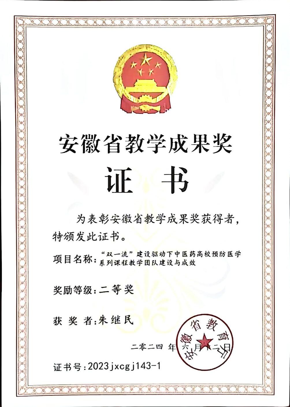 在教学改革的路上,朱继民从不停步。医学统计学是一门处理医学数据变异性的科学,实践性强,一向被认为难教、难学、难应用,为破解“三难” 困境,他提出 “以能力培养为中心” 的教学改革思路,牵头探索案例法、比较法、翻转课堂等多元教学模式,还编制了 48 个带中医药特色的正反教学案例,总结出统计描述与假设检验方法选用的 “123 规则”。他主编了省级规划教材《医学统计分析方法》和科学出版社 “十四五” 规划教材《医学统计学》,搭建 2 个省级网络教学平台,先后斩获安徽省教学成果二等奖、三等奖,以及省级教学创新大赛三等奖。