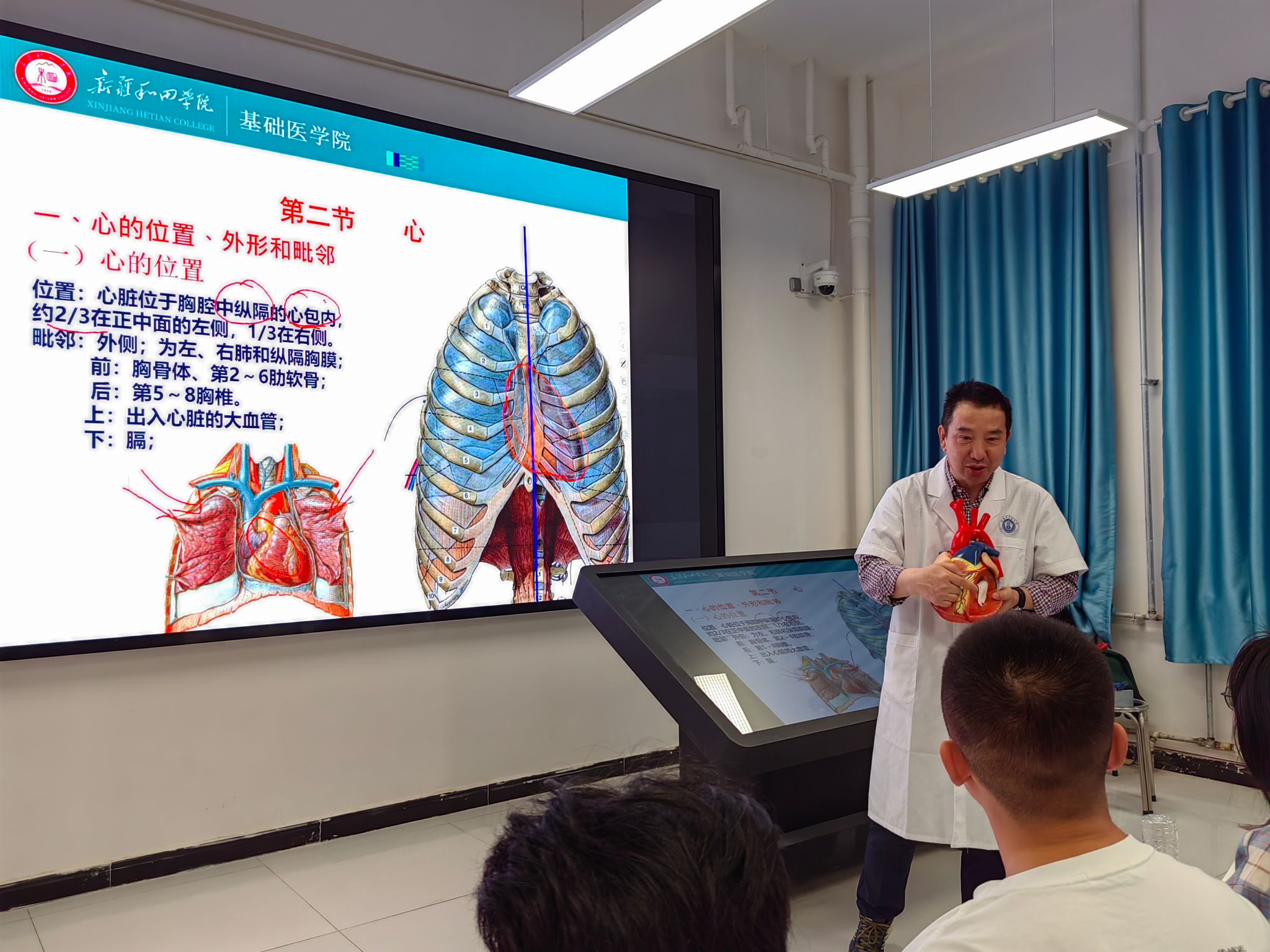 传经送宝到南疆,倾心聚力建新功。王龙海响应组织号召,积极承担援疆工作,担任新疆和田学院基础医学院副院长兼人体解剖学教研室教师。在所带的班级中,针对大多数少数民族孩子性格内向、学习积极性不高等问题,王龙海深入了解学生,走进学生内心,民汉结对,因材施教,成效明显。其中有一名叫排尔哈提·赛麦提民族的学生,缺乏自信,形成性评价作业有时不能完成,但这个学生喜爱足球,是校足球队队员,王龙海以踢足球相关的解剖学知识为导课,激励他,为他创造表现的机会,一学期结束时,这个孩子的形成性评价作业几乎满分。同时,王龙海积极开展教学改革,构建在线学习平台;挖掘和田地区特有思政元素申报自治区课程思政示范团队项目;指导青年教师参加自治区基础医学技能大赛获二等奖;以教学基本功和创新为抓手,助推教育学质量提升。援疆期间的工作受到受援学校师生的一致好评和爱戴。