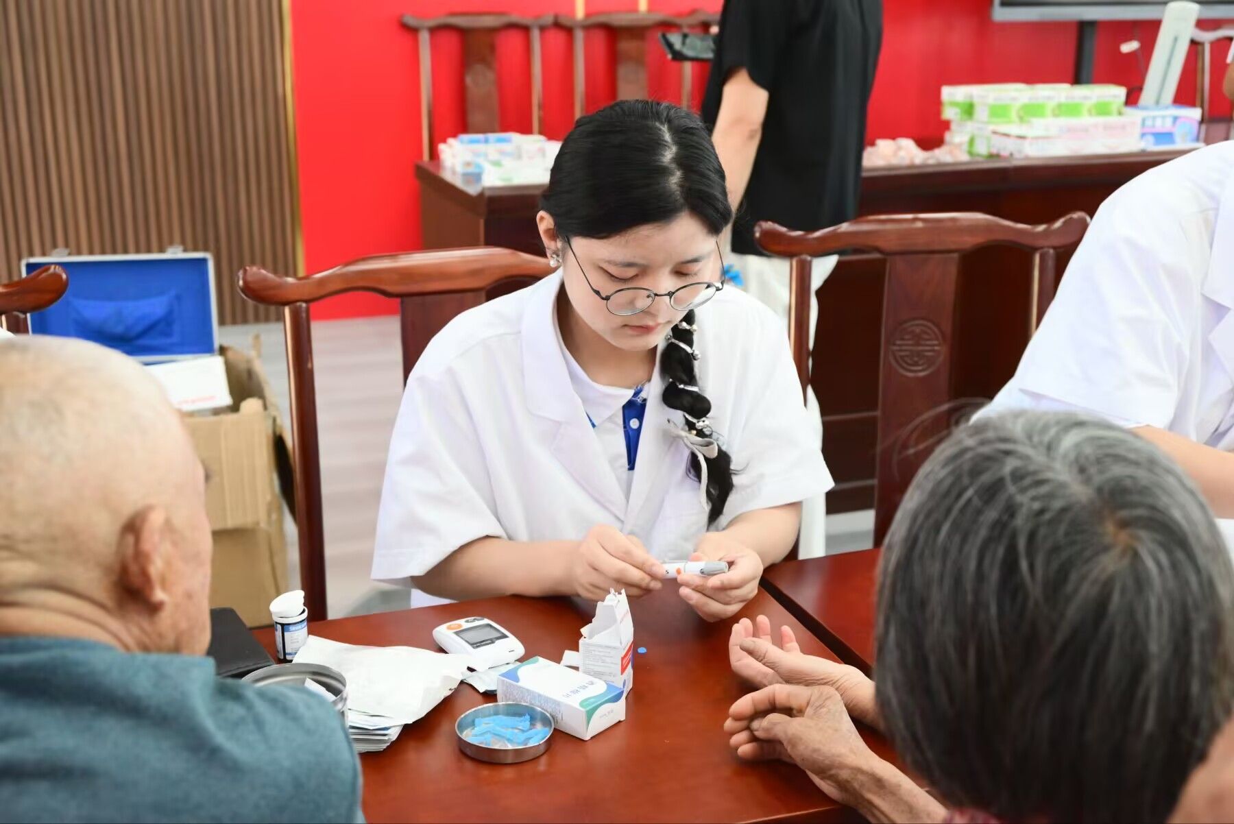 初入校园时,她以最积极的“新人”姿态投入志愿服务。后来,作为社团发展中心志愿服务部部长和学院团委挂职副书记,她成功统筹、策划并执行了50余项志愿活动。她主动联合校红十字会,牵头组织了10余次社区义诊活动。在她带领下,团队累计服务居民超1000人次,志愿服务时长突破3000小时。