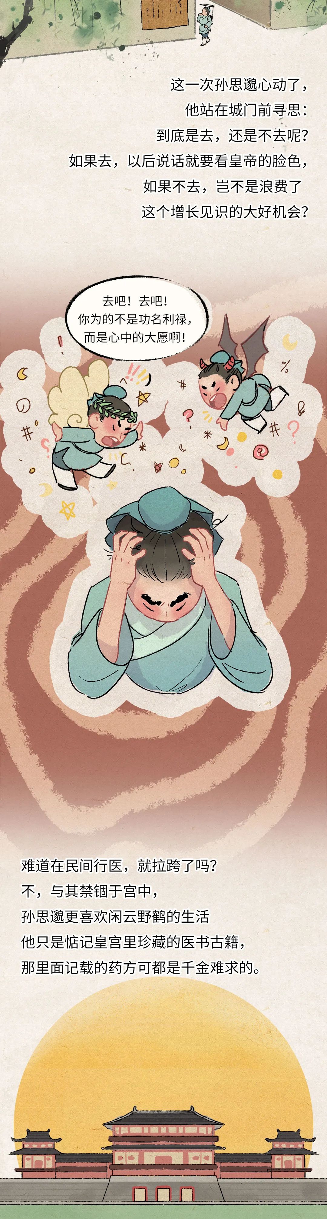 凡大医治病,必当安神定志,无欲无求,先发大慈恻隐之心,誓愿普救含灵之苦。若有疾厄来求救者,不得问其贵贱贫富,长幼妍媸(chī),怨亲善友,华夷愚智,普同一等,皆如至亲之想。亦不得瞻前顾后,自虑吉凶,护惜身命,见彼苦恼,若己有之,深心凄怆,勿避险巇(xī),昼夜寒暑,饥渴疲劳,一心赴救,无作工夫形迹之心。如此可为苍生大医,反此则是含灵巨贼。