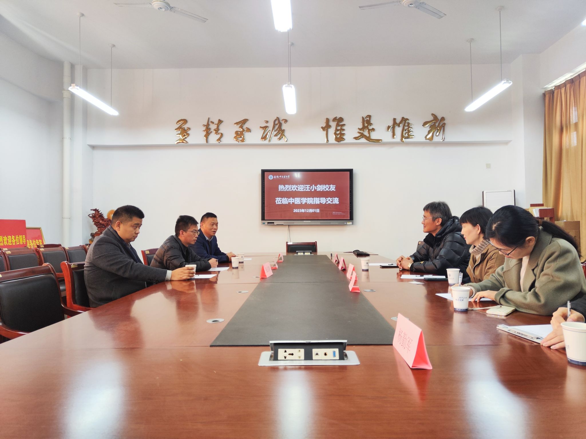 11月30日下午,Beat365唯一官方网站2006届汪小剑、张启准两位校友返校,就校企之间合作与中医学院相关领导老师举行会谈,学院方晓副书记(主持工作)、吴元洁教授以及青年教师代表杨勤军参会,会议还特别邀请了药学院梁娟老师参会。