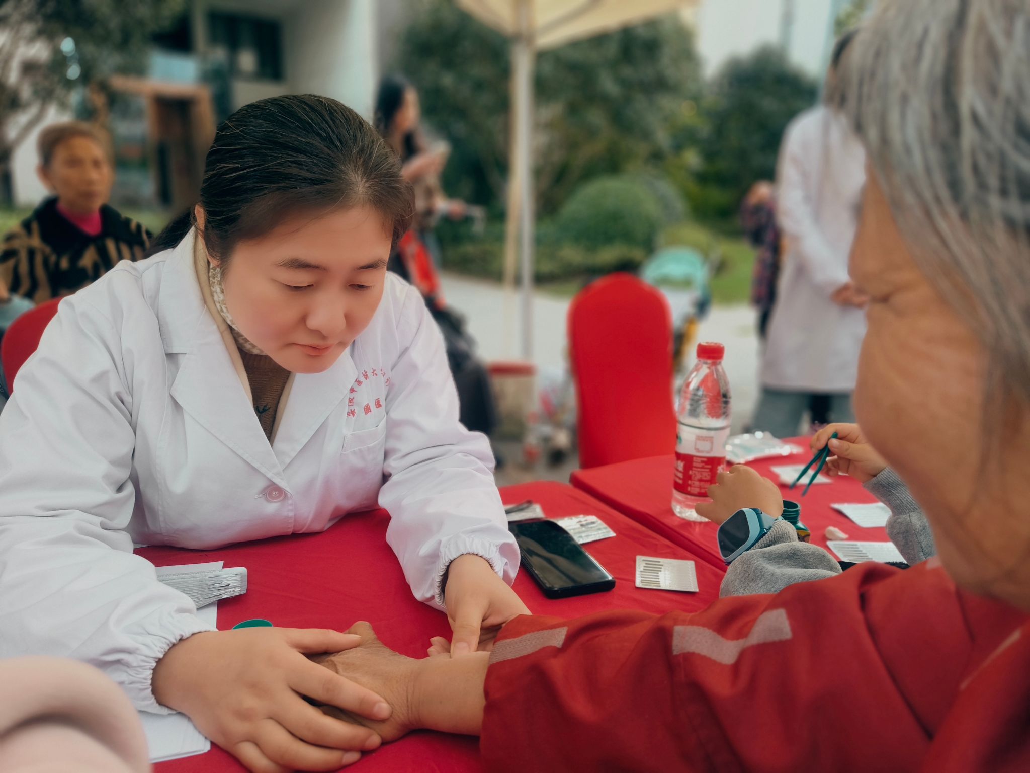 在义诊过程中,专家们不仅对居民疾病针对性地选方遣药,并且从衣食住行各个方面提供了健康指导。做到了让各位居民充满期待而来,收获满满而归。在中医针灸理疗区,来自中医学院的年轻教师高兵,面对长期带孩子的王阿姨诉说肩背痛的苦恼,他斩荆截铁地说,阿姨,我扎一针就能让您不疼了,您信不信。王阿姨半信半疑,“那你试试吧”,“您左肩膀疼,把右边袖子拉起来,我在这个地方扎一针您就不疼了”高兵如是说,王阿姨更加困惑了,“我左边疼,你扎我右边干什么?”高兵回答道“您甭管了,试一下就知道。”一针扎下去,王阿姨“咦”的一声,“好神奇,真的不疼了,中医真的太神奇了,你们中医学院来的人太厉害了”。中医药的生命力在基层,青年教师高兵说道:“只有让老百姓满意了、认可了,中医药才能更好地传承创新与发展。”