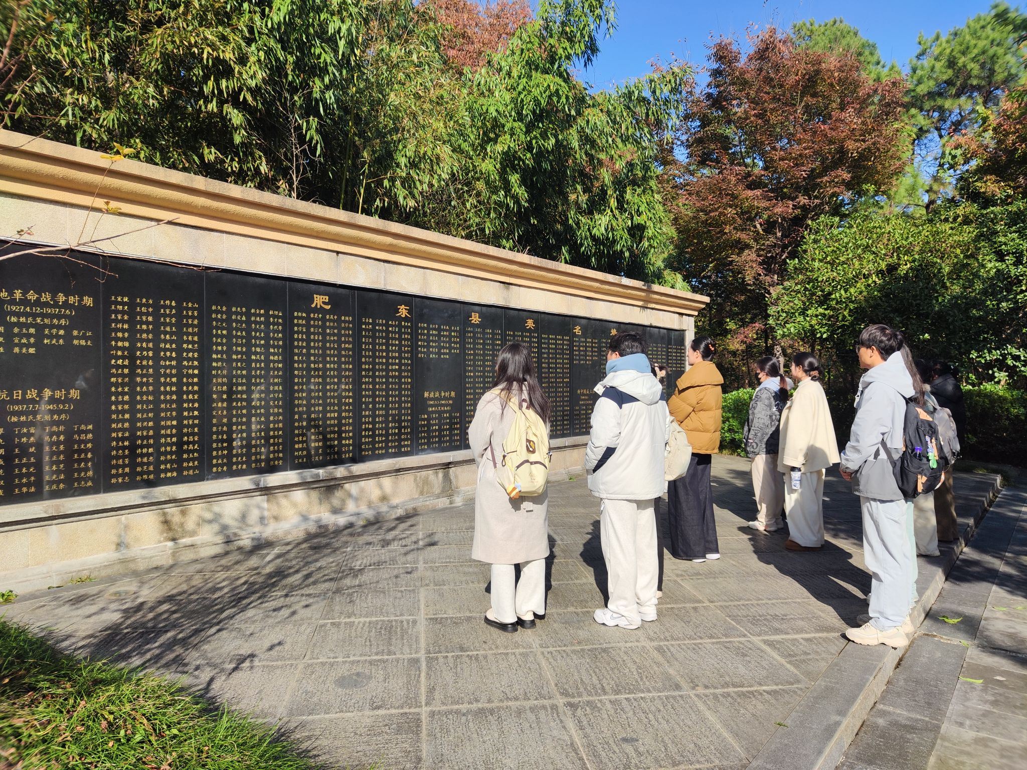 茶壶山烈士陵园位于肥东县长临河镇四顶山山麓,长眠着半个世纪前牺牲的50多位革命烈士。在党支部书记的带领下,全体学生瞻仰了革命烈士纪念碑,深切表达对革命先烈的无限崇敬和深切缅怀之情。