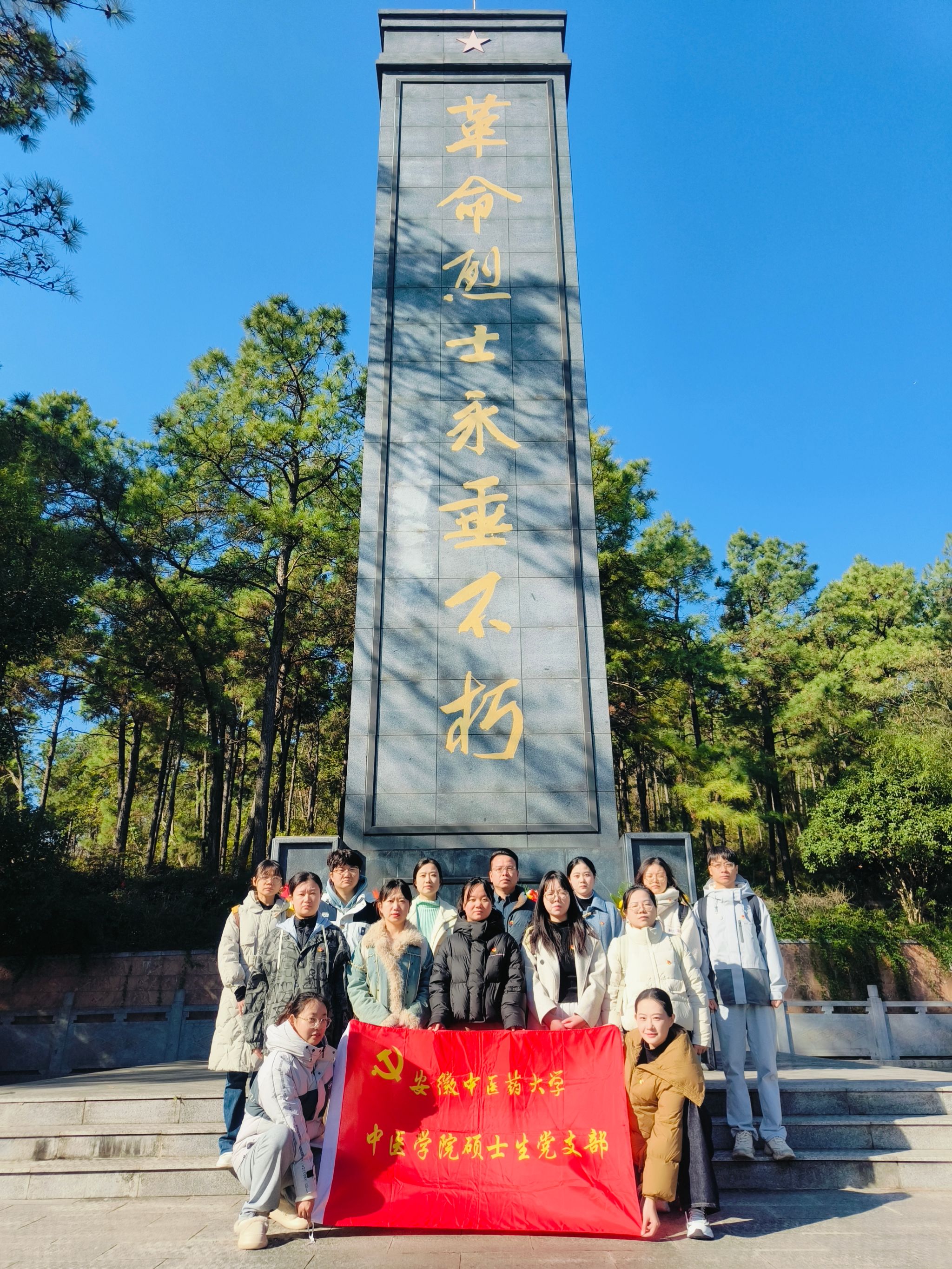 为深切缅怀革命先烈,赓续传承红色基因,进一步夯实学院“杏林微光”党建品牌内涵,持续推进研究生样板支部建设,11月26日上午,中医学院硕士生党支部赴茶壶山革命烈士陵园开展“寻根红色地图”活动。活动由党支部书记段雷带队,支部部分党员,院全体第14期发展对象及第65期入党积极分子参加。