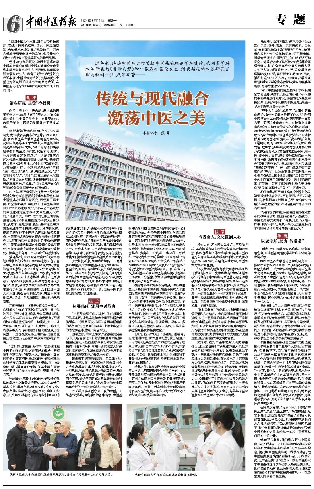 近年来,陕西中医药大学重视中医基础理论学科建设,采用多学科方法开展的《黄帝内经》和中医基础理论发生、演变与思维方法研究在国内独树一帜,成果显著——