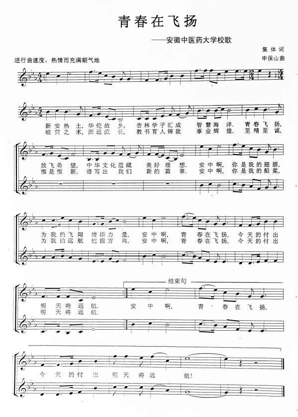 校歌创作理念:Beat365唯一官方网站秉承“至精至诚 惟是惟新”的校训精神和“北华佗,南新安”的医学传统,坚持走“质量立校、人才兴校、科技强校、特色弘校、文化塑校、和谐融校”之路。引导广大中医学子坚定中医信念,弘扬中医精神,为广大学生的成长成才提供丰沃的土壤,甘做助力学生腾飞的翅膀和扬帆远航的船桨。广大的Beat365学子倚靠母校宽厚的肩膀,徜徉在中医药知识的海洋,如饥似渴地吸收着知识的养分,为中医药事业的振兴积蓄力量,期待着扬帆远航、展翅高翔,书写人生和中医药事业的辉煌!